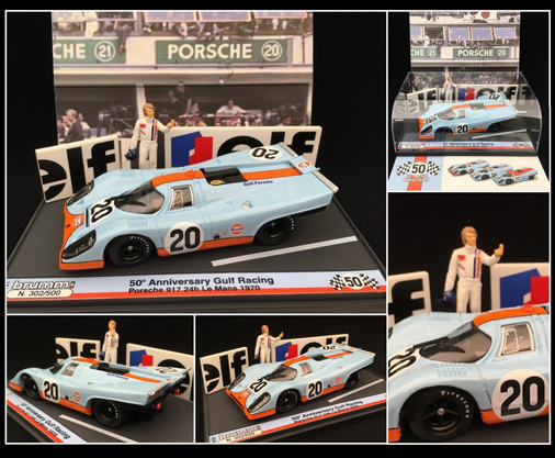 Porsche 917 K Gulf n°20 - Movie "Le Mans" 1971 Edition spéciale Anniversaire 50 ans Gulf Avec figurine Steve McQueen 1/43 - Brumm S1901 Edition Limitée - 500 exemplaires numérotés 39,95 € TTC / Incl. Taxes