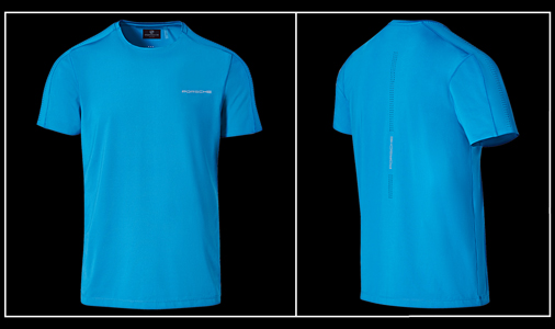 T-shirt homme Porsche Taycan Collection Matière élastique 92 % polyester / 8 % élasthanne - Couleur Bleu électrique En tissu mesh très respirant - Séchage rapide Porsche WAP601LTYC 59,95 € TTC / Incl. Taxes