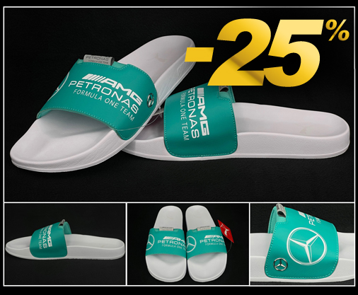 Sandales Mixtes Mercedes-AMG F1 Dessus Simili Cuir rembourré - Doublure tissu respirant Semelle synthétique 100% EVA - Couleur Noir / Vert