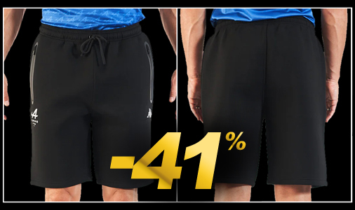 Short homme Alpine F1 Team by Kappa Matière 70% Polyester / 24% Viscose / 6% Elasthanne - Couleur Noir Taille réglable par cordon de serrage - 2 poches latérales zippées Kappa 33196TW