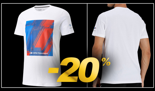 T-shirt homme BMW Motorsport by Puma Col rond avec bord élastique - Couleur Blanc / Bleu / Rouge - Matière 100 % coton Puma 531195-02