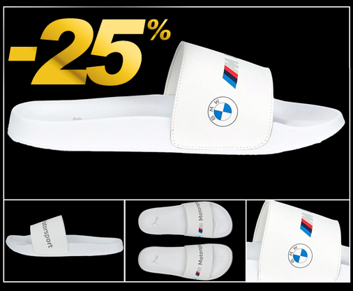 Sandales Mixtes BMW Motorsport Dessus Simili Cuir rembourré - Doublure tissu respirant Semelle synthétique 100% EVA - Couleur Blanc