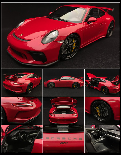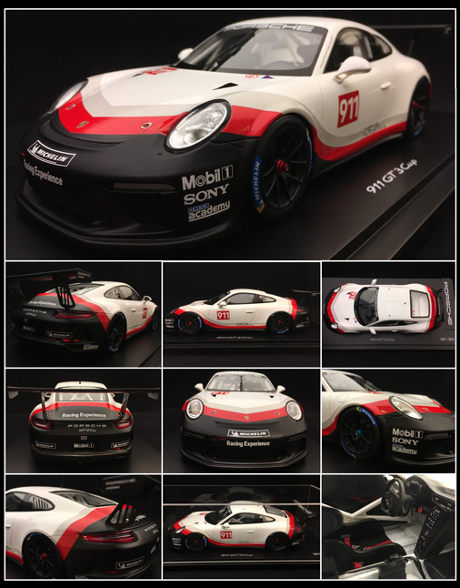 C’est le retour des nouveautés ce week-end : 991 GT3 « civile » en rouge carmin flamboyant, mais surtout superbe Cup 2018 au 1/18.