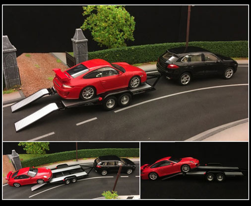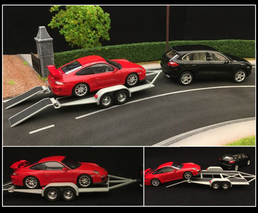 22# Remorque Porte-Voiture Pour Porsche Double Essieu Noire - 1 : 43
