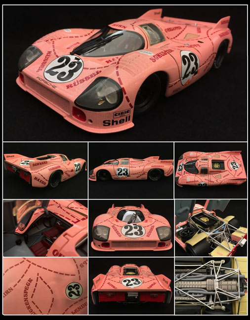 Et on commence avec 2 nouvelles 911 RSR 1/18 à un prix incroyable. Viennent ensuite 4 nouvelles 917 très détaillées de chez Minichamps dont l'incomparable Cochon Rose du Mans 1971.