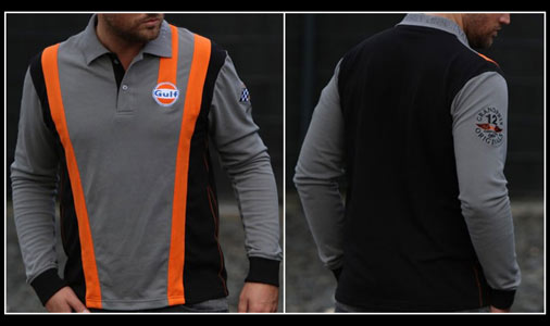 Polo homme Gulf Racing Team - 50ème Anniversaire Couleur: gris / orange / noir Matériel : 65% coton, 35% polyester 79,90 € TTC / Incl. Taxes