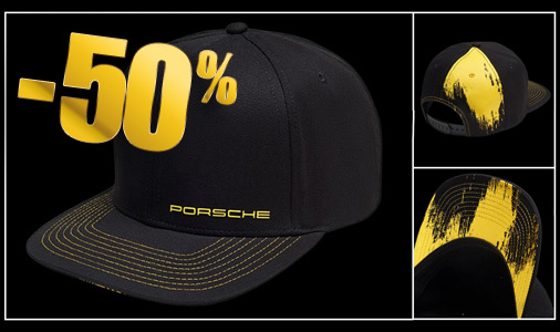 Casquette Porsche GT4 Clubsport Forme type snapback / baseball - Taille unique réglable 57 / 62 cm Couleur noir / jaune - Matière 100 % Coton Porsche WAP3400010LCLS