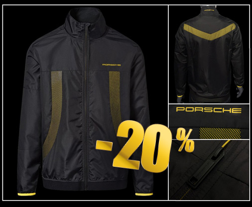 Veste mixte Porsche GT4 Clubsport Coupe-vent avec col montant - Matière 100% polyester - Couleur noir / jaune Porte-clés détachable avec mousqueton - Poches latérales et intérieure à glissière Porsche WAP349LCLS