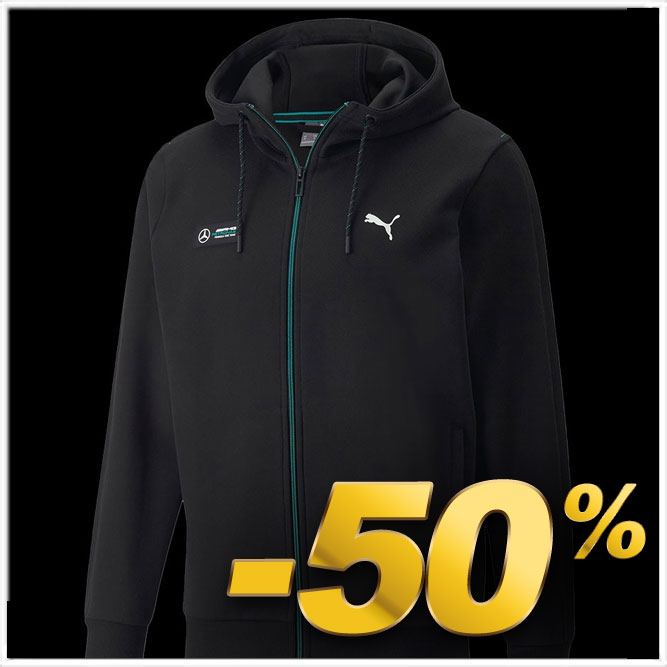 Men's Hoodie Mercedes F1 by Puma Cotton / Polyester Color Black / Spectra Green Puma 533607-01
