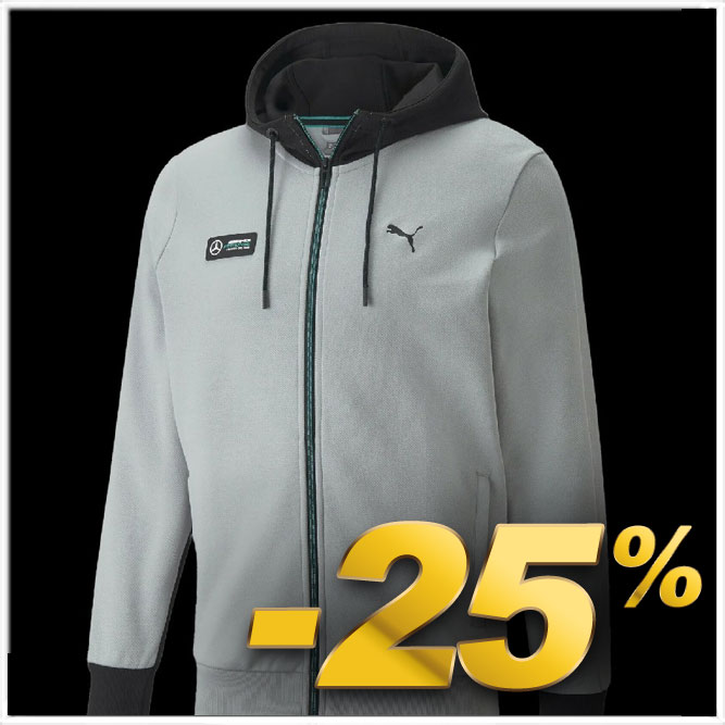 Men's Hoodie Mercedes F1 by Puma Cotton / Polyester Color Grey / Black Puma 533607-02
