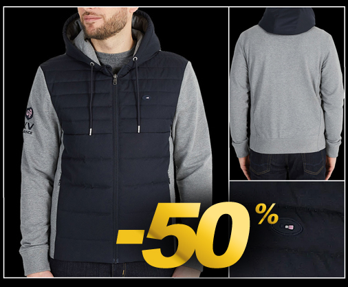 Hoodie homme Eden Park XV de France Tissage fin de haute qualité - Capuche avec cordon de serrage - 2 poches zippée Matière 100% Polyester - Couleur Bleu Marine / Gris - Fermeture zippée Eden Park H23MAISW0039
