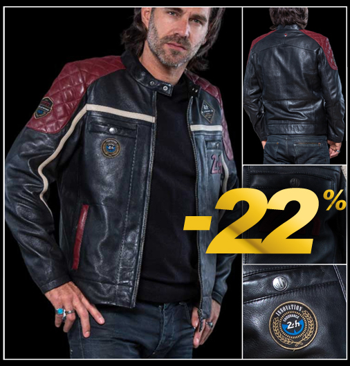 Veste en Cuir homme 24h Le Mans Matière 100% cuir de mouton - Couleur Noir - Col pressionné Fermeture zippée - 2 Poches latérales zippées - 2 poches poitrine Classic Legend Motors 27475-3046