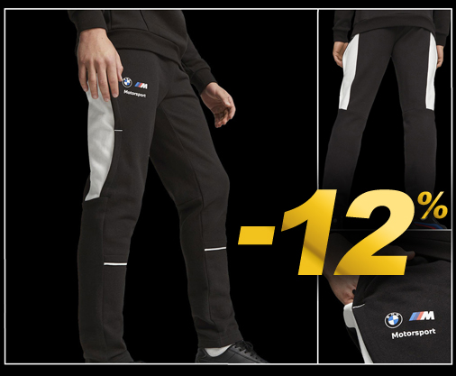 Pantalon homme BMW Motorsport Matière 100% Coton - Couleur Noir - 2 poches latérales Taille côtelée et réglable par cordon de serrage Puma 621223-01