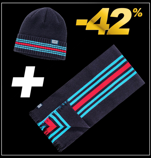 Echarpe & Bonnet Porsche Martini Matière 70% Acrylique / 30% Laine - Couleur Bleu / Rouge - Dimensions Echarpe 160 x 29 cm Porsche WAP5500050P0MR + WAP5500040P0MR