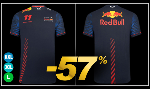 T-Shirt homme Sergio Perez Red Bull F1 - Tailles L / XL / XXL seulement Matière 84% Polyester / 16% Elastane - Couleur Bleu Nuit Red Bull TM3184