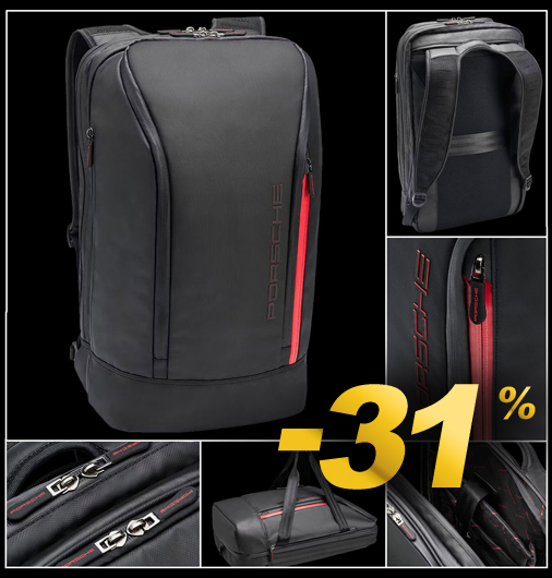 Sac à Dos Porsche Matière 100% Polyester étanche - Compartiment séparé pour ordinateur Soufflet avec fermeture pour agrandir / réduire le sac - Couleur Noir / rouge Bretelles rembourrées - Passage pour trolley - Dimensions 53 × 19 × 31 cm Porsche WAP0355100PUTB