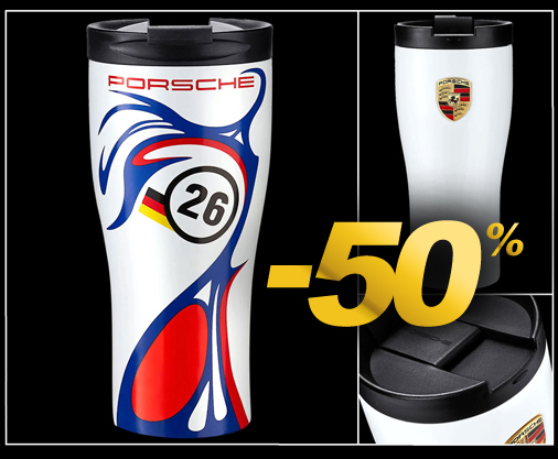 Mug Thermos Porsche 911 GT1 n°26 - Vainqueur 24h Le Mans 1998 Dimensions 9 x 8,5 x 18,7 cm - En acier inoxydable à double paroi Contenance 460 ml - Couleurs Blanc / Rouge / Bleu Porsche WAP0506180RTHB