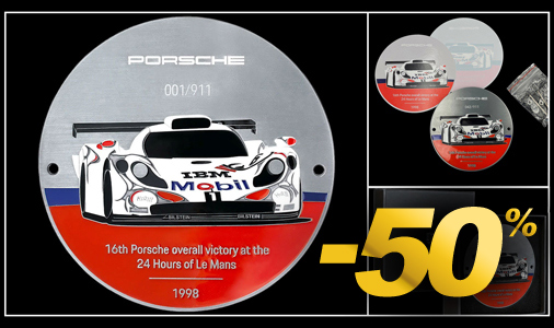 Badge de Grille Porsche 911 GT1 n°26 - Vainqueur 24h Le Mans 1998 Diamètre 9,5 cm - Matière 95% Zinc / 5% Acrylique Autocollant et vignette inclus pour intérieur et extérieur Kit de fixation sur le véhicule inclus - Fabriqué en Allemagne Porsche WAP0508120RGBD Edition limitée - 911 exemplaires