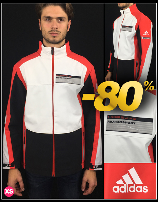 Veste homme Porsche Motorsport Adidas - Taille XS seulement Couleur Noir / blanc / rouge / gris - Matière 77 % Nylon / 23 % Elasthanne Coutures et fermetures étanches - Pattes de serrages aux manches 2 poches extérieures - 1 poches intérieure fermée Porsche WAX20104