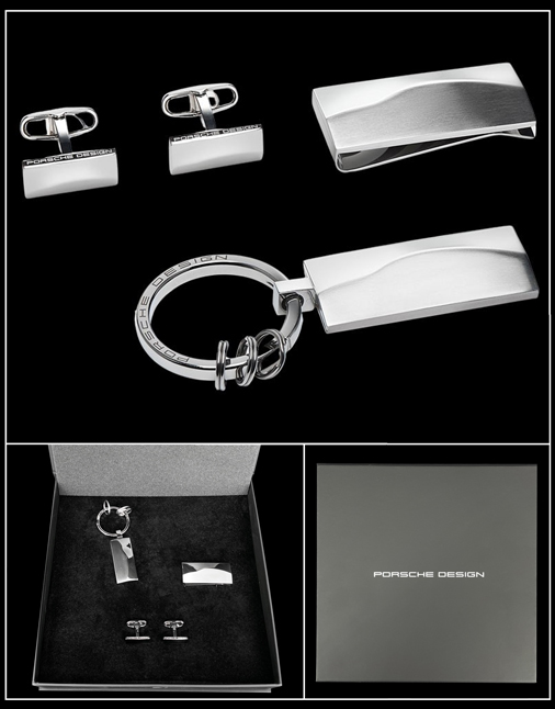 Set Accessoires de Luxe Porsche 911 Flyline 2 Boutons de manchettes avec silhouette de Porsche 911 - Acier inoxydable Porte clé avec silhouette Porsche 911 - Longueur : 4,5 cm - Acier inoxydable Pince à billet avec silhouette Porsche 911 - Longueur : 4,5 cm - Acier inoxydable Porsche Design 4046901656850 329,95 € TTC / Incl. Taxes