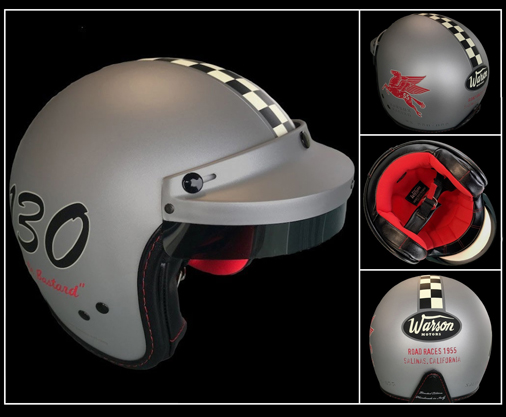 Casque James Dean n°130 Little Bastard Couleur gris mat / bande damier noir et blanc - Matière Coque 100% polycarbonate Doublure Terinda avec cuir écologique - Fabrication artisanale italienne Casque sûr et solide aux normes de sécurité Européenne CEE 2205 Housse de transport nylon noire Edition limitée - 200 exemplaires numerotés