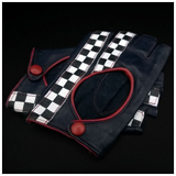 Leather Driving Mittens Red / Black / Checkered flag Lamb leather - Made in Italy