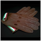 Leather Driving Gloves Italia Brown / Tricolor band Lamb leather - Made in Italy
