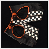 Leather Driving Mittens Black / Orange / Checkered flag Lamb leather - Made in Italy