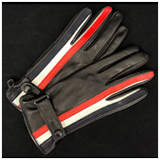 Leather Driving Mittens Cream / Red & blue stripes Lamb leather - Made in Italy