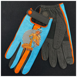 Leather Driving Gloves Gulf Orange / Blue - Perforated top Lamb leather - Made in Italy 89,95 € TTC / Incl. Taxes