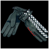 Leather Driving Gloves Little Bastard Black / Checkered flag Lamb leather - Made in Italy