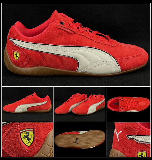 Chaussures Ferrari Speedcat Matière Cuir de vache velours - Doublure en textile Semelle en Caoutchouc - Couleur Rouge / Blanc Inclus deux paires de lacets Rouge / Blanc Puma 309125-02