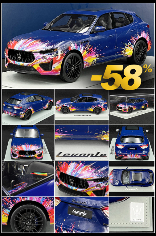 Ce Levante Trofeo Fuoriserie Edition à l’échelle 1/18 est fabriqué en résine et comporte environ 200 détails de personnalisation, chacun assemblé et décoré manuellement, y compris l’application des décalcomanies sur chaque exemplaire.