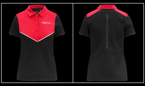 Polo femme Porsche Motorsport Tissu élastique confortable et respirant - Matière 95% Coton / 5% Elasthane Inscription Porsche dans le dos - Couleur Rouge / Noir 64,95 € TTC / Incl. Taxes