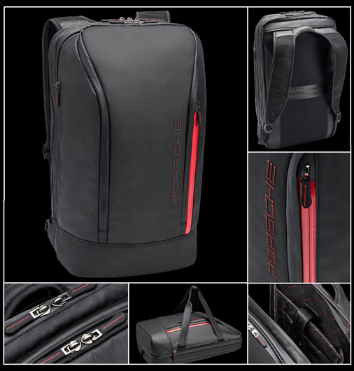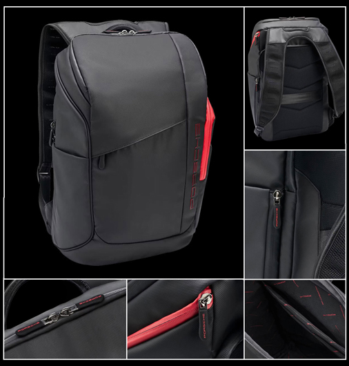 Sac à Dos Porsche Matière 100% Polyester étanche - Compartiment séparé pour ordinateur Soufflet avec fermeture pour agrandir / réduire le sac - Couleur Noir / rouge Bretelles rembourrées - Passage pour trolley - Dimensions 53 × 19 × 31 cm Porsche WAP0355100PUTB 219,95 € TTC / Incl. Taxes