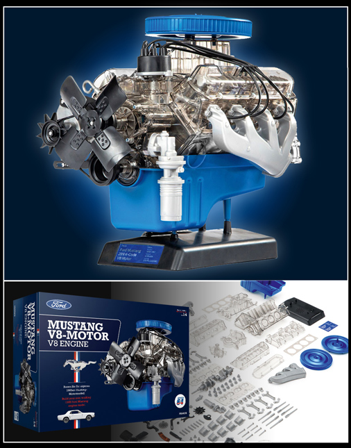 Moteur Ford Mustang V8 K-code 1965 Réplique entièrement fonctionnelle 200 pièces à monter soi-même - Socle de présentation inclus Bouton de mise en marche avec cycle "son et lumières" Reproduction sonore du moteur - Fonctionne avec 3 piles AAA Livret avec les instructions de montage Echelle 1/3 199,95 € TTC / Incl. Taxes