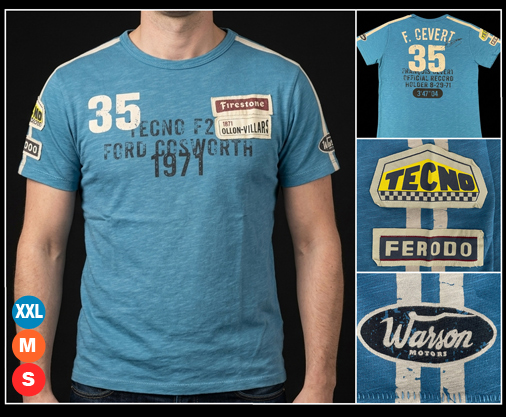 T-shirt homme François Cevert n°35 - Tailles S / M / XXL seulement Matière 100% Coton - Couleur Bleu Warson 13106 54,95 € TTC / Incl. Taxes