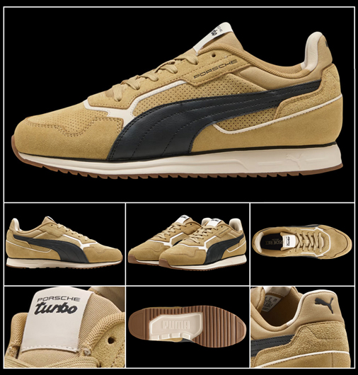 Chaussures homme Porsche Turbo Matière Cuir / Textile - Semelle en Caoutchouc rigide et tissage fin de haute qualité Couleur Café au Lait / Noir - Surpiqûres Blanches Puma 308973-04 79,95 € TTC / Incl. Taxes
