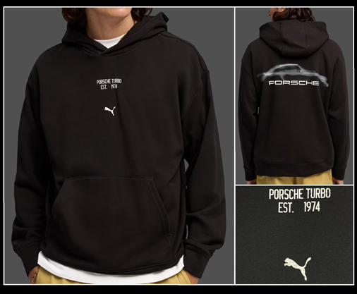 Hoodie mixte Porsche Turbo Matière 68% Coton / 32% Polyester - Couleur Noir Poche kangourou - Capuche fixe Porsche 634488-01