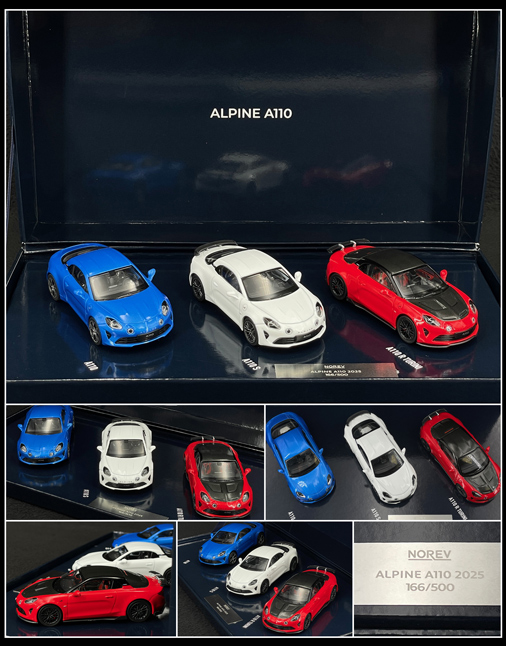 Coffret Alpine A110 / A110 S / A110 R 2025 Bleu / Blanc / Rouge 1/43 - Norev 517882 Edition limitée - 500 exemplaires numérotés 79,95 € TTC / Incl. Taxes