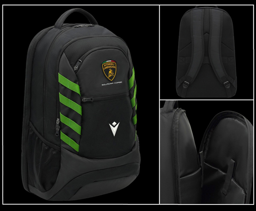 Sac à dos Lamborghini Matière 100% Polyester - Bretelles réglables et dos rembourré - Poches frontales zippées Dimensions 34 x 52 x 20 cm - Compartiment ordinateur portable - Couleur Noir Lamborghini 58589502 69,95 € TTC / Incl. Taxes