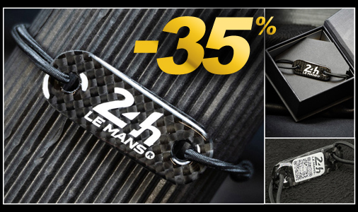 Take home a piece of the legend with this unique recycled carbon bracelet. 24hr Le Mans logo, QR code on the back to discover its history. Derived from racing vehicles, it can vary in shape, appearance and wear, underlining its unique, hand-crafted character.