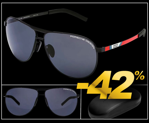 Lunettes de Soleil Porsche Martini Racing Protection anti-UV 100% - Normes européennes - Verre polarisant et anti-reflets Monture Noir mat en acier inoxydable - Branches Rouge / Blanc / Bleu Fabriquées en Italie - Porsche WAP0750010P0MR