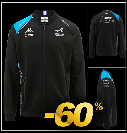Veste homme Alpine F1 - Taille XL seulement Matière 70% polyester / 24% vinyle / 6% élasthanne - Couleur Noir / Bleu Fermeture principale zippée - 2 poches latérales zippée Kappa 321J8LW-A12
