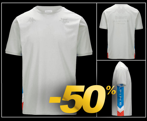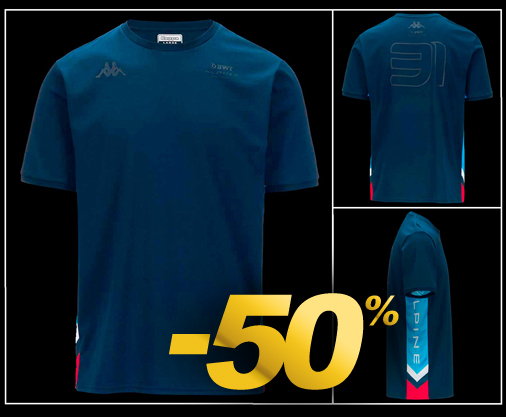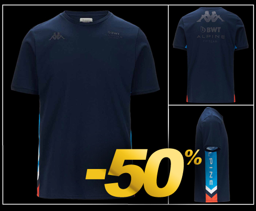 T-shirt homme Pierre Gasly Alpine F1 by Kappa Matière 60% Coton / 40% Polyester - 2 Couleurs disponibles Kappa 361L3PW