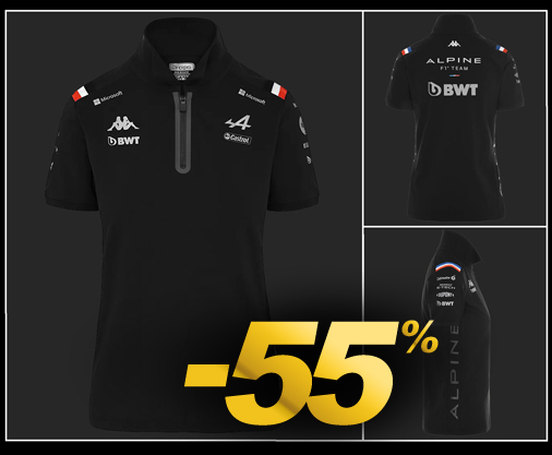 Polo femme Alpine F1 - Tailles XS / L / XL seulement Matière 62% Coton / 30% Polyester / 8% Elasthanne - Couleur Noir - Col zippé Kappa 35163WW
