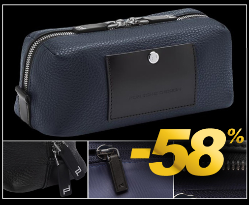 Trousse de Toilette en cuir Porsche Design Matière 100% Cuir de veau - Grande poche principale zippée Dimensions 9 x 21 x 9 cm - Couleur Bleu Marine Porsche Design 4046901932756