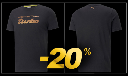 T-shirt homme Porsche Turbo by Puma Couleur Noir / Or - Matière 100% Coton Puma 536729-01