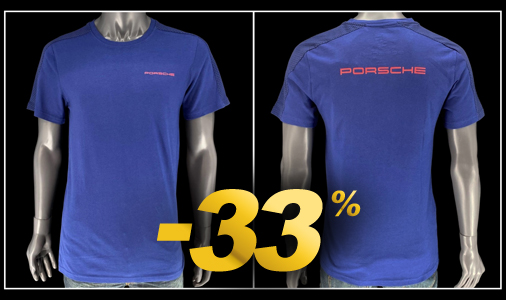 T-shirt homme Porsche Racing Monogramme lettres Porsche sur la poitrine & dans le dos Matière 100 % coton - Couleur Bleu / noir / rouge Porsche WAP300M0SR