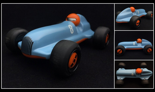 Voiture de course Vintage en bois pour enfant Forme spécialement adaptée aux enfants Design made in Germany - Roues silencieuses Couleur Bleu Gulf / Orange - Longueur 15 cm Schuco 450987200 19,95 € TTC / Incl. Taxes